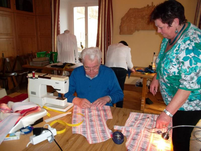Einige Frauen aus dem Verein verfügen über gute Nähkenntnisse. Sie fertigen für Mädchen- und Frauentrachten und Dirndl die Schnitte, erstellen den Zuschnitt und nähen die Trachten (Kleider, Schürzen, Blusen). Ebenso werden Änderungsdienste durchgeführt. Für die Buben und Männer schneidern sie Leiberl.